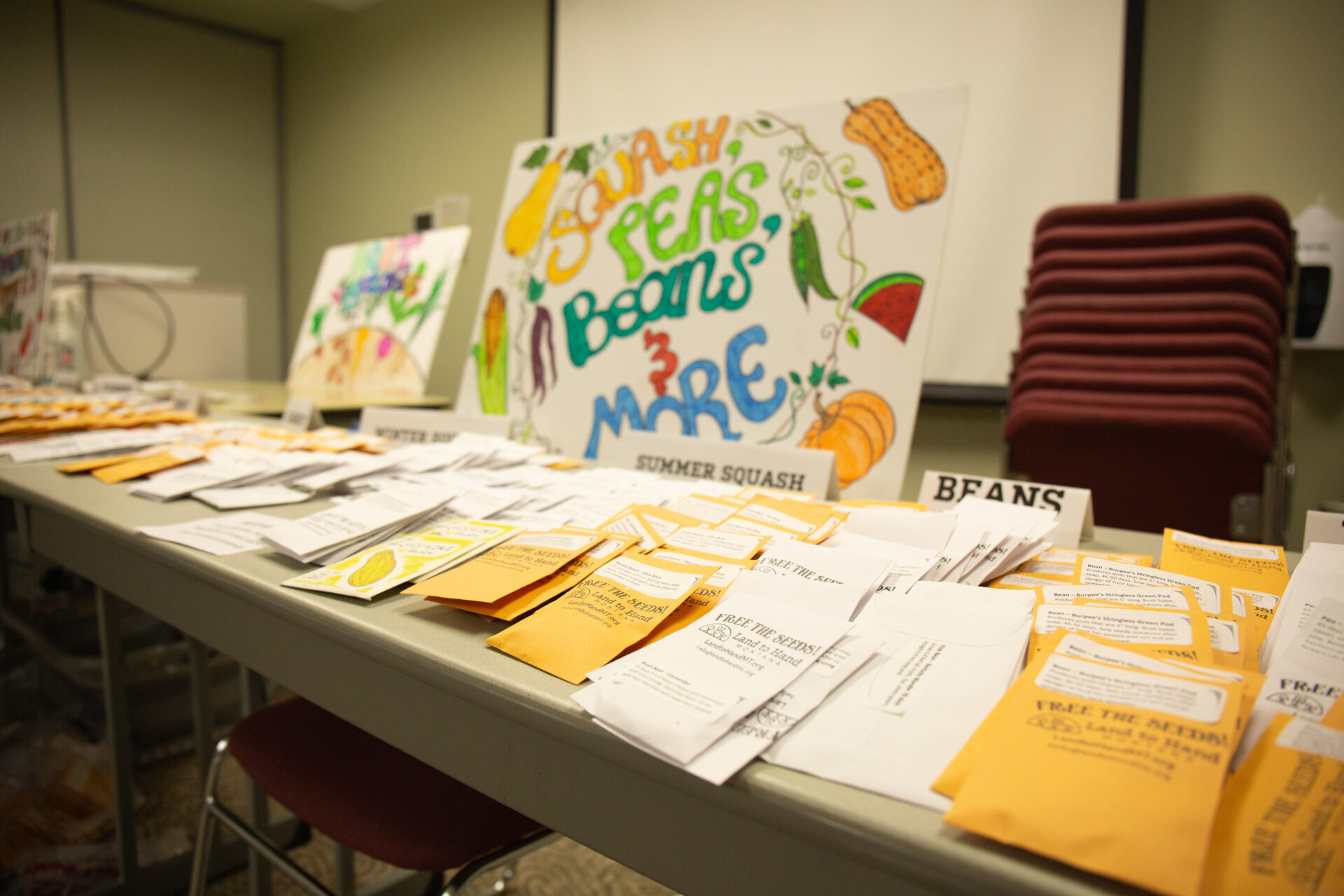 Community members save and donate seeds during the year and volunteers get the seeds ready to give away. Save your seeds for the 2026 event!